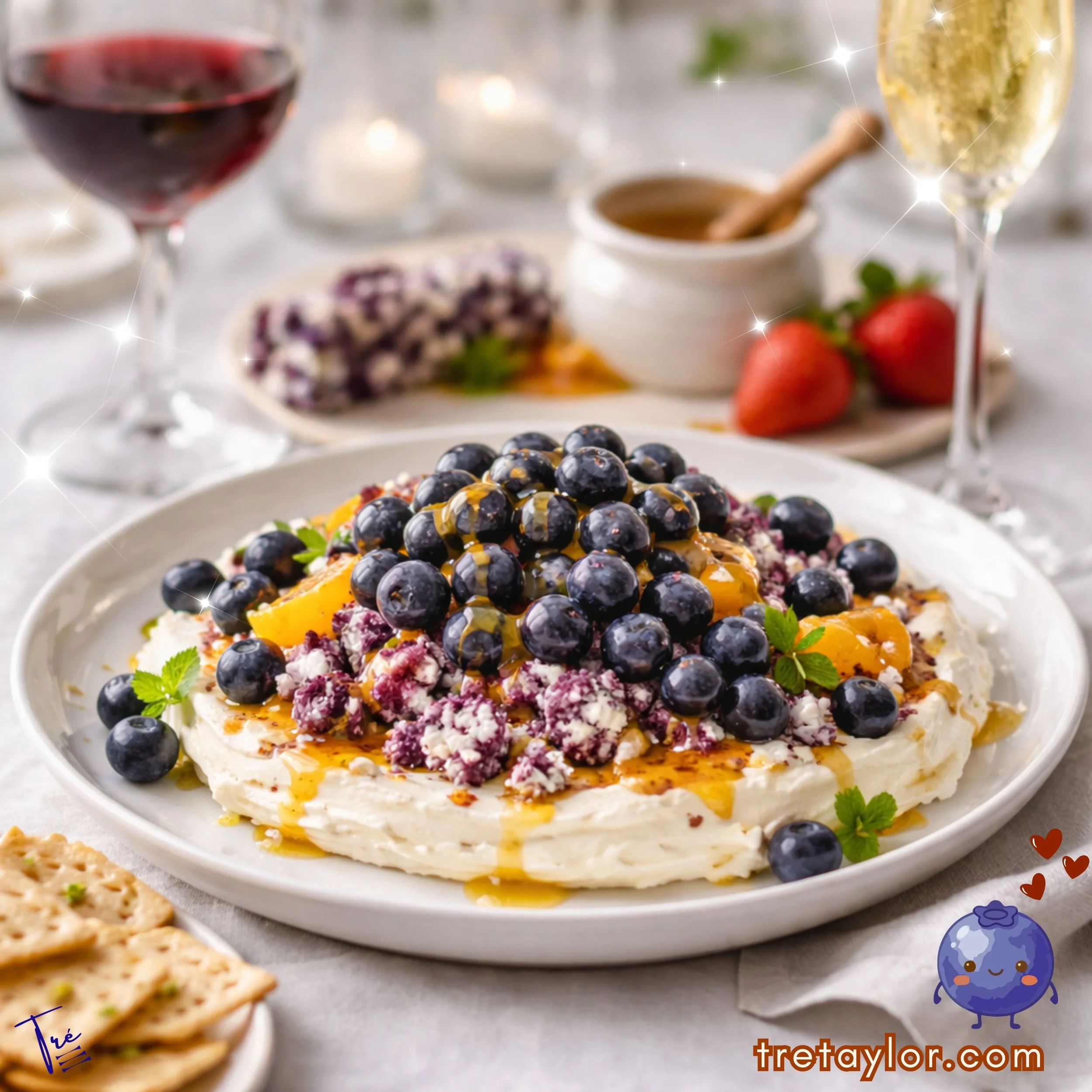 Creamy whipped cheese meets tangy goat cheese studded with blueberries, layered with fresh berries and drizzled with golden honey. It’s sweet, salty, lush, and dangerously addictive—the kind of appetizer that disappears before you realize you’ve been “taste testing” nonstop.